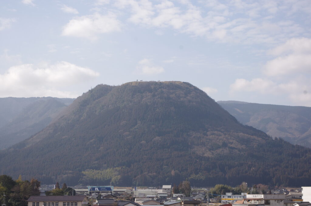 平坦な頂上は、ハングライダーやパラグライダーの基地となっていて、山頂にはかって九州における南朝側の拠点となった玖珠城(株城)土塀跡が残っています。
